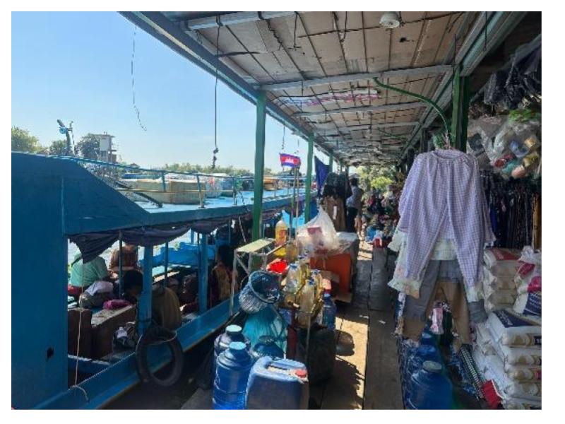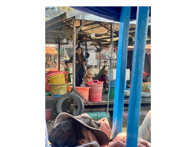We stopped at a food/aluminium cup/mosquito net/plumbing supply shop for lunch. The river became narrower and shallower toward the end, and we passed people in the water, tending to fish traps and nets.