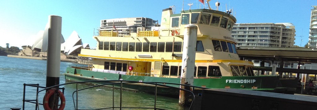 A close-up view of a ferry, the Friendship, named after a ship of the First Fleet. My ferry was a bit larger and newer.