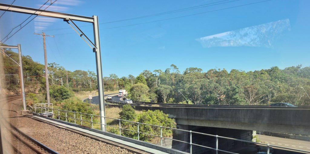 The railway and the motorway, the Great Western Highway, runs parallel through this stretch of the Blue Mountains.