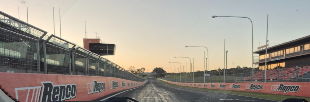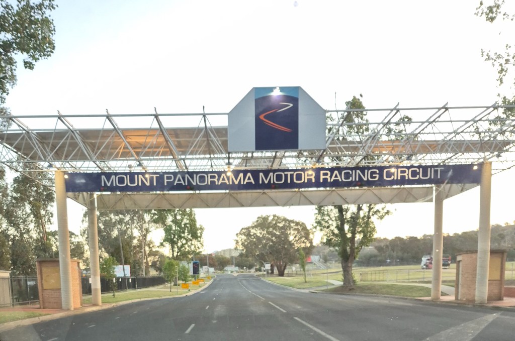 Unfortunately, an official stopped us from going around the entire track, but I took a great photo including the marvellous view from Mount Panorama, and the caravan park in the foreground.