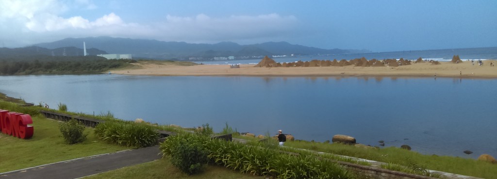 I followed the road for a few hundred meters to Fulong Beach (above). According to Tour Taiwan, “Fulong Beach is located at the mouth of Shuangxi River at Sandiaowan, Gongliao District, New Taipei City. The beach stretches as long as 3 kilometers with golden sand. It has always been a summer resort in northern Taiwan. Every summer, a good number of tourists would gather here to swim and enjoy the sun. Fulong Beach was famous during the Japanese occupation of Taiwan. … It is the most famous beach in northern Taiwan, just as Kenting is the most famous beach in southern Taiwan.”