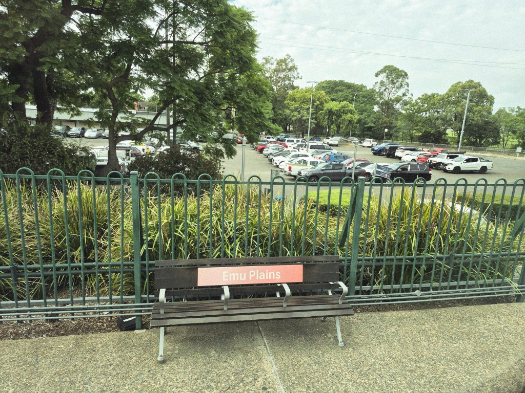Emu Plains Station, just beyond the river. Emu Plains is redolent of the Australian bush, though in reality, there is a large car park just next to the station (above).
