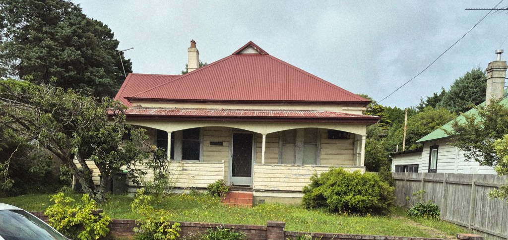 On the bus. I snapped a picture of this old Blue Mountains cottage.