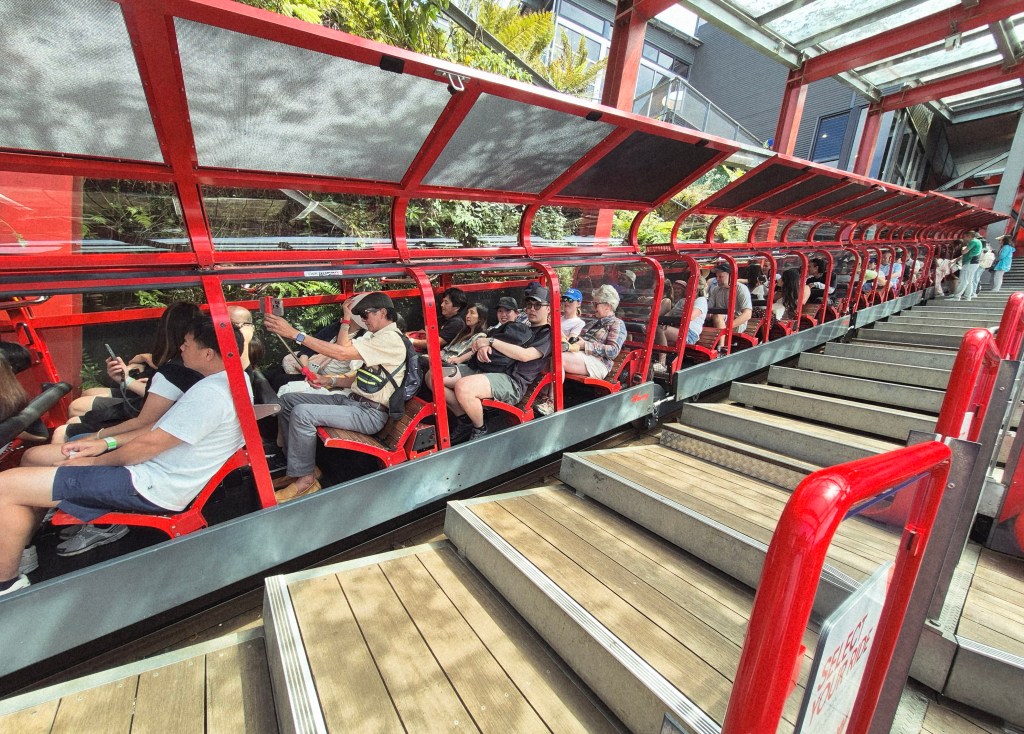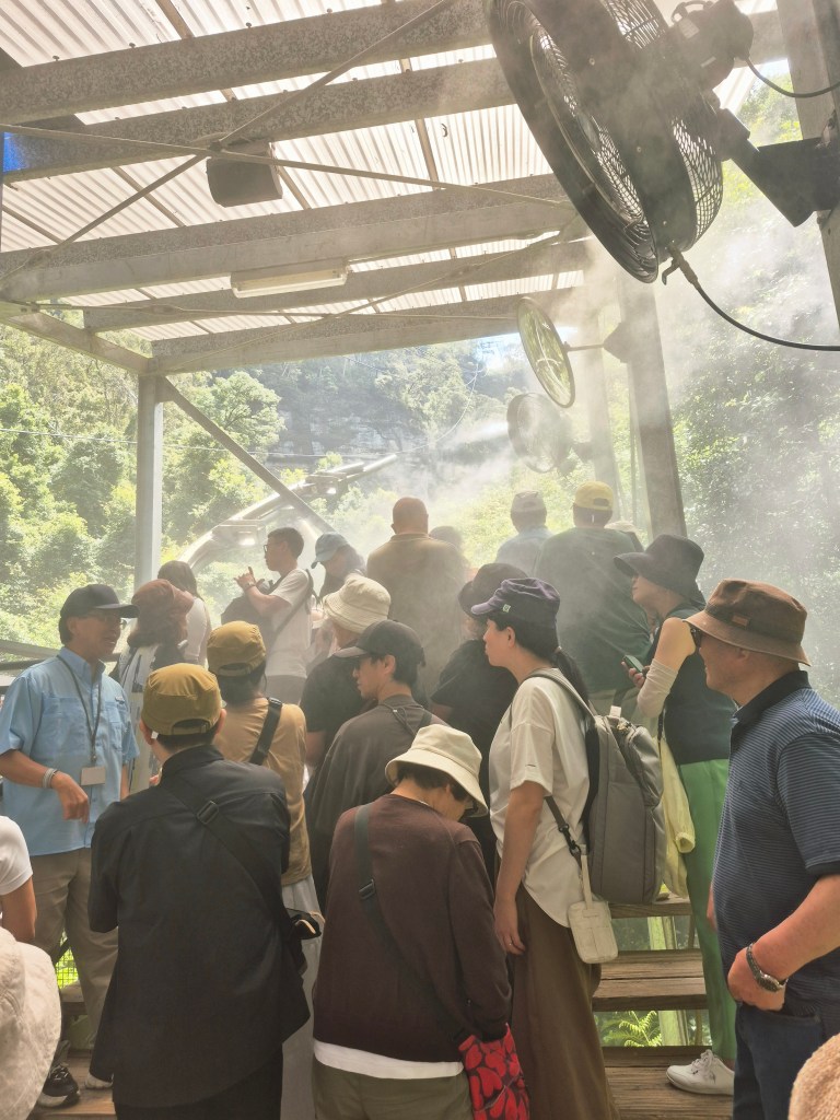 We waited in line to board the Scenic Cableway. A fine water spray (above) was produced by overhead nozzles to keep the patrons cool.