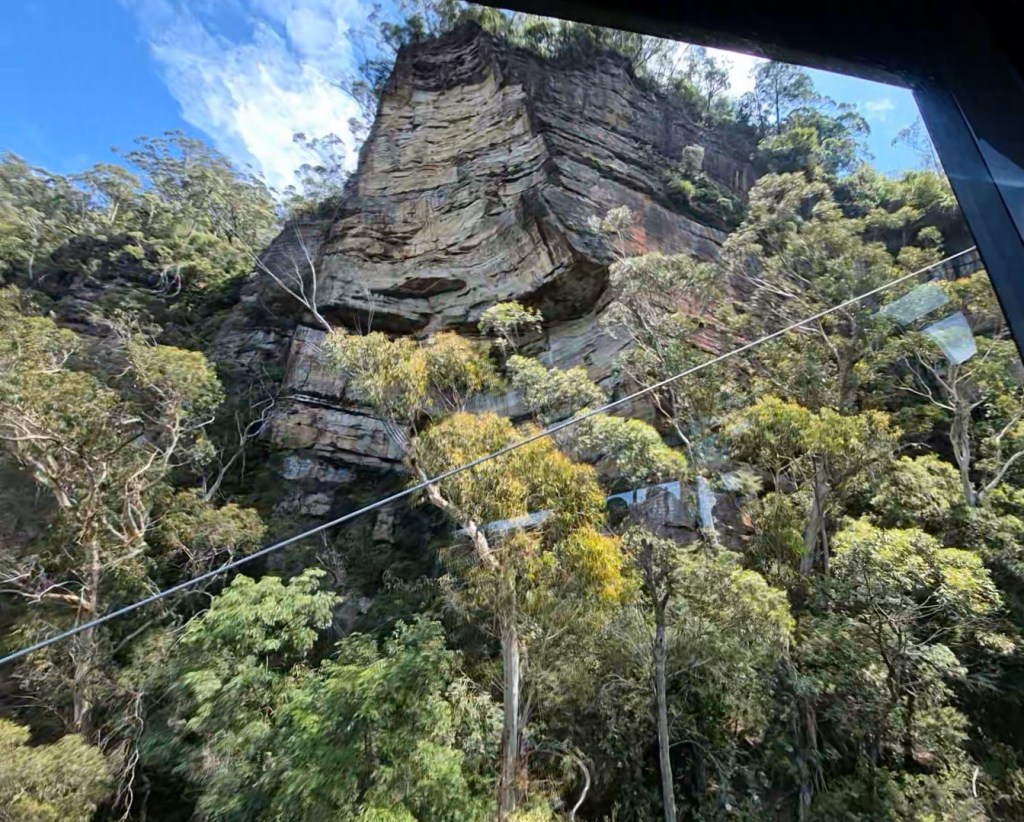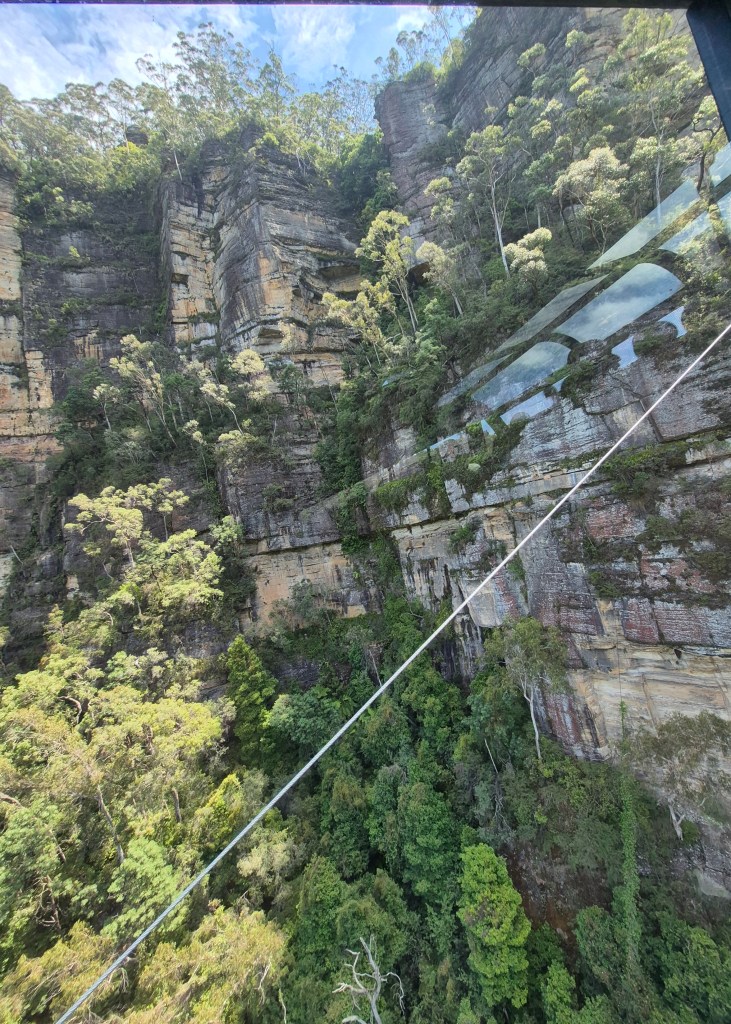 On our way to the Scenic Railway we passed the Scenic Skyway (above). Scenic World gushes “Glide between cliff tops 270 metres above a World Heritage-listed rainforest”. Maybe next time I visit.