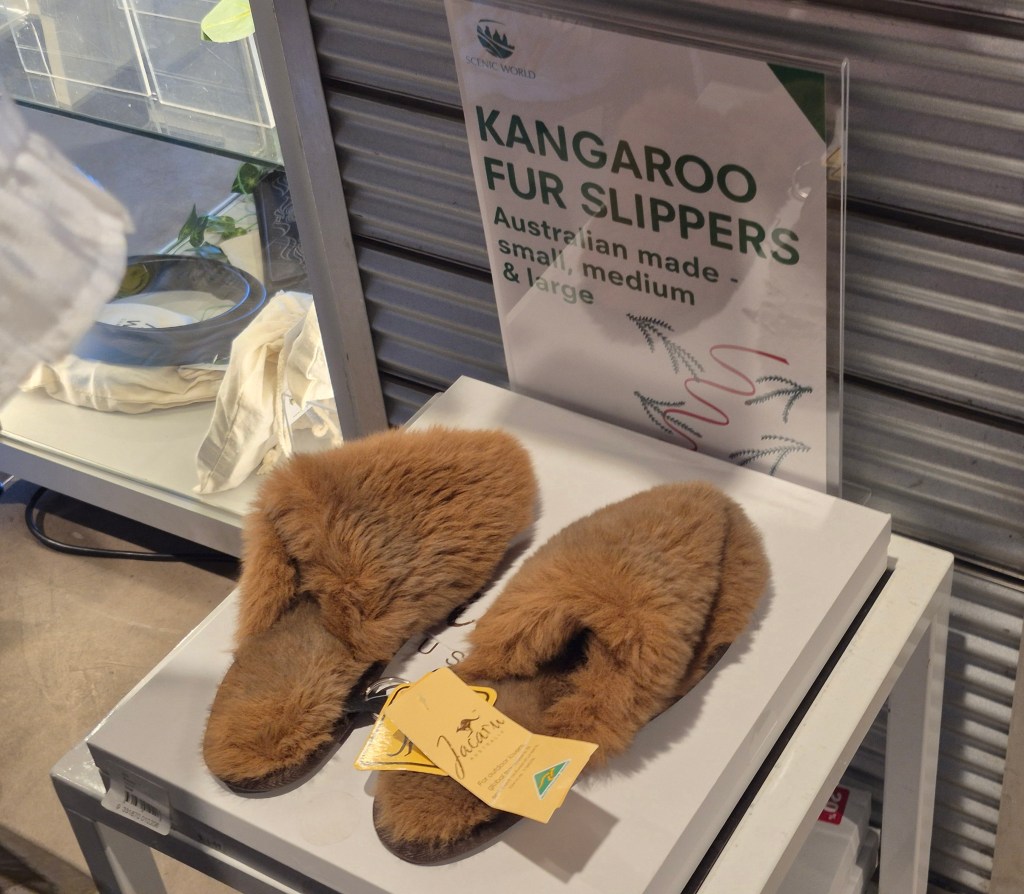 While walking through the gift shop, I saw these slippers, made out of kangaroo fur….