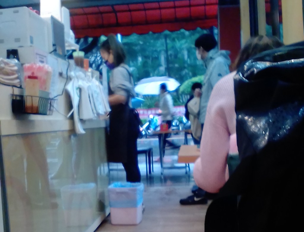 I had breakfast in a cafe I go to often, run by a family (the daughter is pictured above). Look at the rain falling!