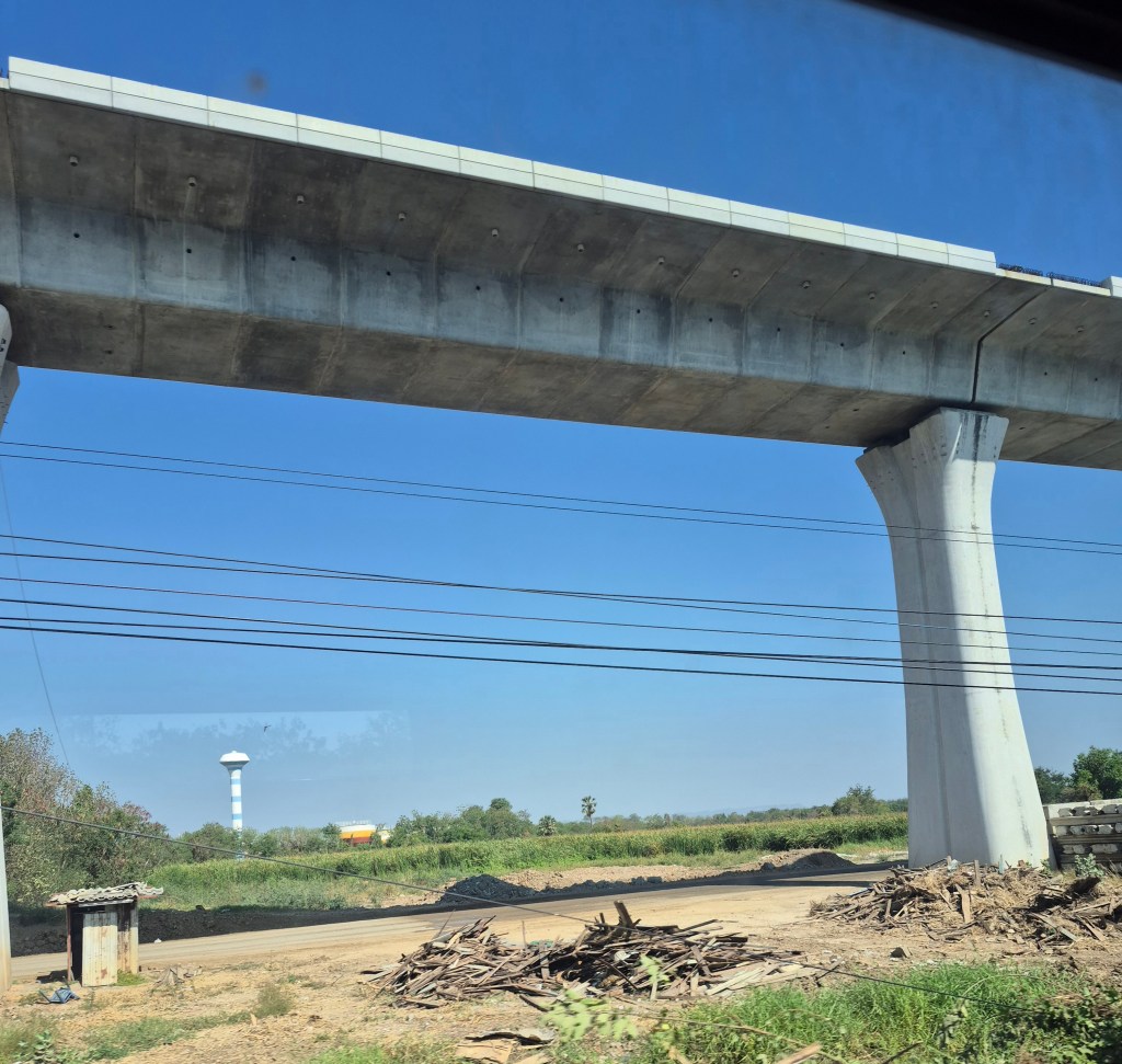 Alongside the railway track there was work building (I think) an elevated railway. Could this be the Thailand-China high speed railway?
