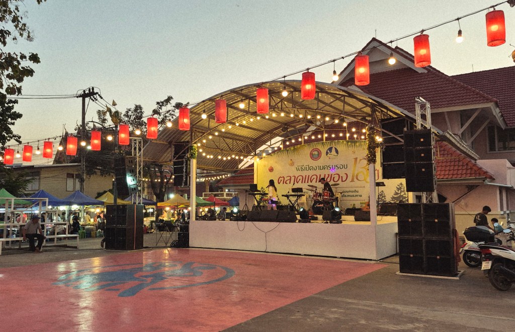 There are two bands with separate stages, allowing them to play different music simultaneously. One stage was a school performance, and one (above) was for adults.