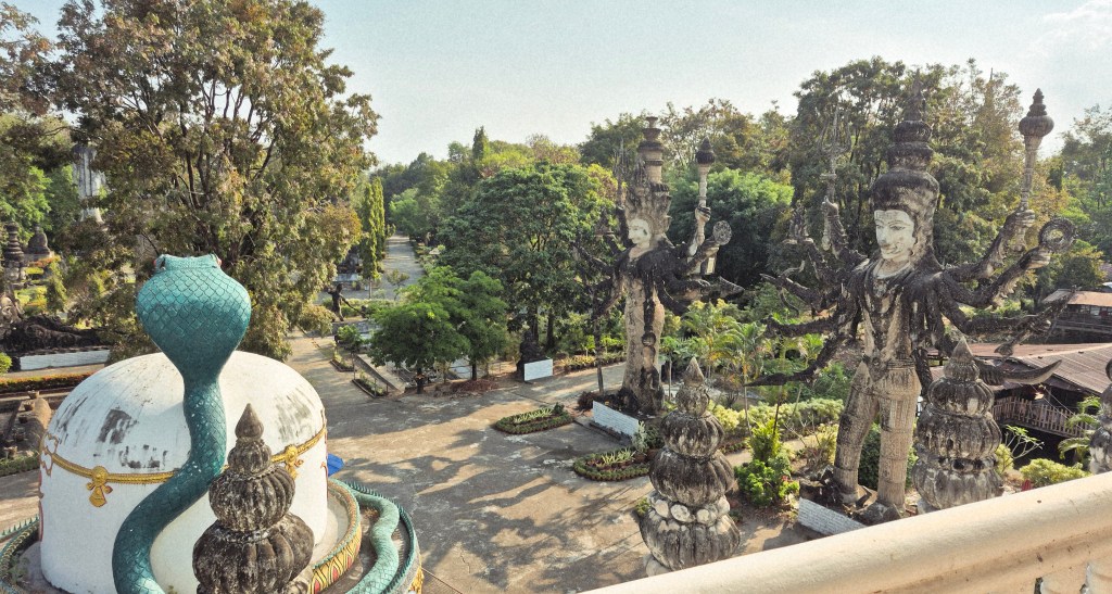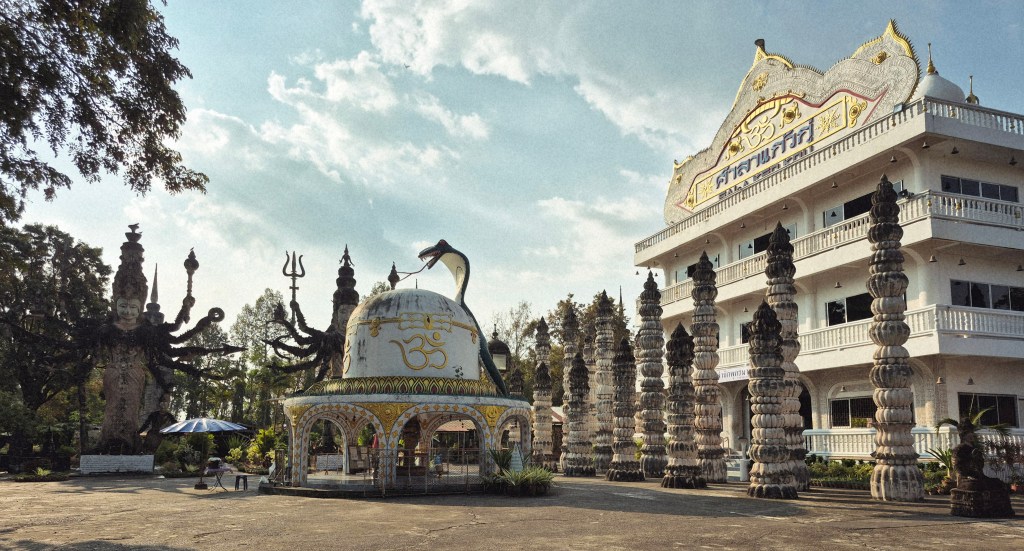 Lonely Planet said “One of Thailand’s most enigmatic attractions, Sala Kaew Ku can’t fail to impress. Built over 20 years by Luang Pu Boun Leua Sourirat, a mystic who died in 1996, the park features a wonderful smorgasbord of bizarre cement statues of Buddha, Shiva, Vishnu and other deities.”