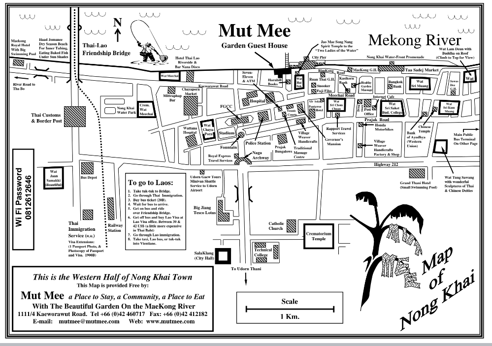 Mut Mee has very extensive information about things to do. There is a map (above) showing sights of interest. Other maps show things around Nong Khai.