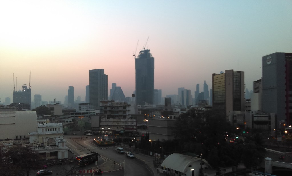 The above photo is of Bangkok around dawn, about 6:30am, on Friday, February 24th. I took it standing on my balcony on the 6th floor (5th floor in Australia) of the Krungkasem Srikrung Hotel facing east; the white building on the lower left is the Hua Lampong Railway Station, formerly the main station in Bangkok.