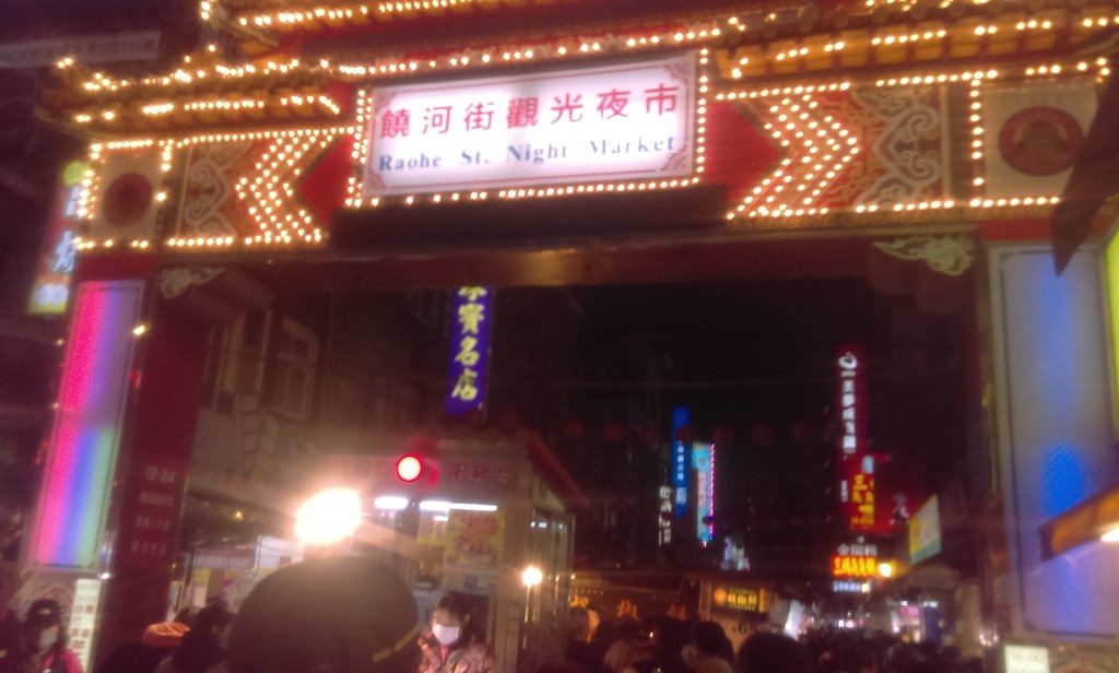 Right next door is the Raohe Street Night Market – in traditional Chinese characters 饒河街觀光夜市, “Raohe Street Tourist Night Market”.