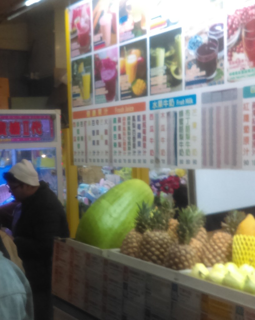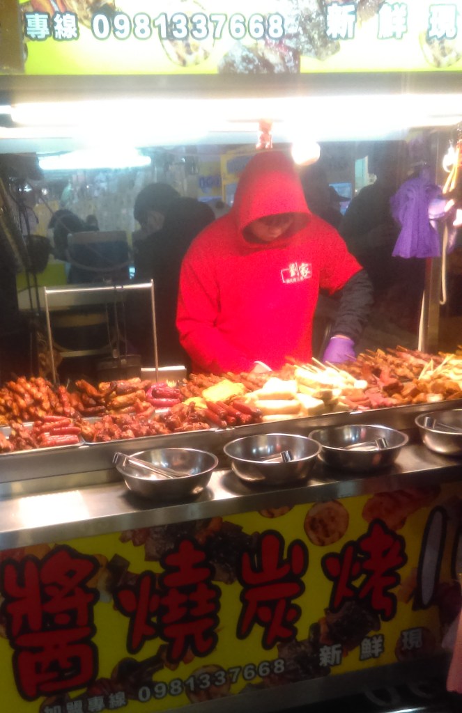 Another factor was the weather. When I visited the markets it was in the middle of a cold snap. After I got back from the night market I checked the temperature on my computer and it was 8 degrees Centigrade. I know some of you are scoffing at that, particularly if you live in England. But Taipei is only a few hundred kilometers from the Tropic of Cancer where the tropics begin; in Australia it would be on the central Queensland coast north of Brisbane. Eight degrees are as cold as I’ve known it in Taipei since I moved here in 2019. I wore my puffer jacket when I left for the night market.