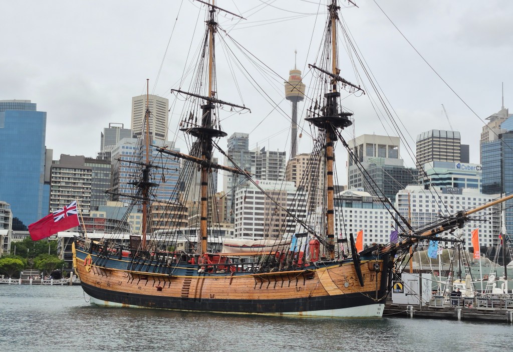 Approaching the National Maritime Museum. The antiquated ship on the left of the above photo is actually a modern replica of the HMV Endeavour.