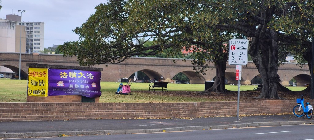 Outside the Sydney Fish Markets there is Wentworth Park (above), with an elevated light rail running across it. There are also some banners put there by Fǎlún dàfǎ (法輪大法). One of their operations is the famous dance troup Shen Yun. Wikipedia says “They are known for their opposition to the ruling Chinese Communist Party (CCP), espousing anti-evolutionary views, opposition to homosexuality and feminism, and rejection of modern medicine, among other views described as ‘ultra-conservative'”.
