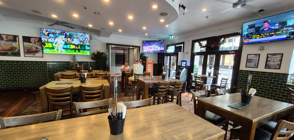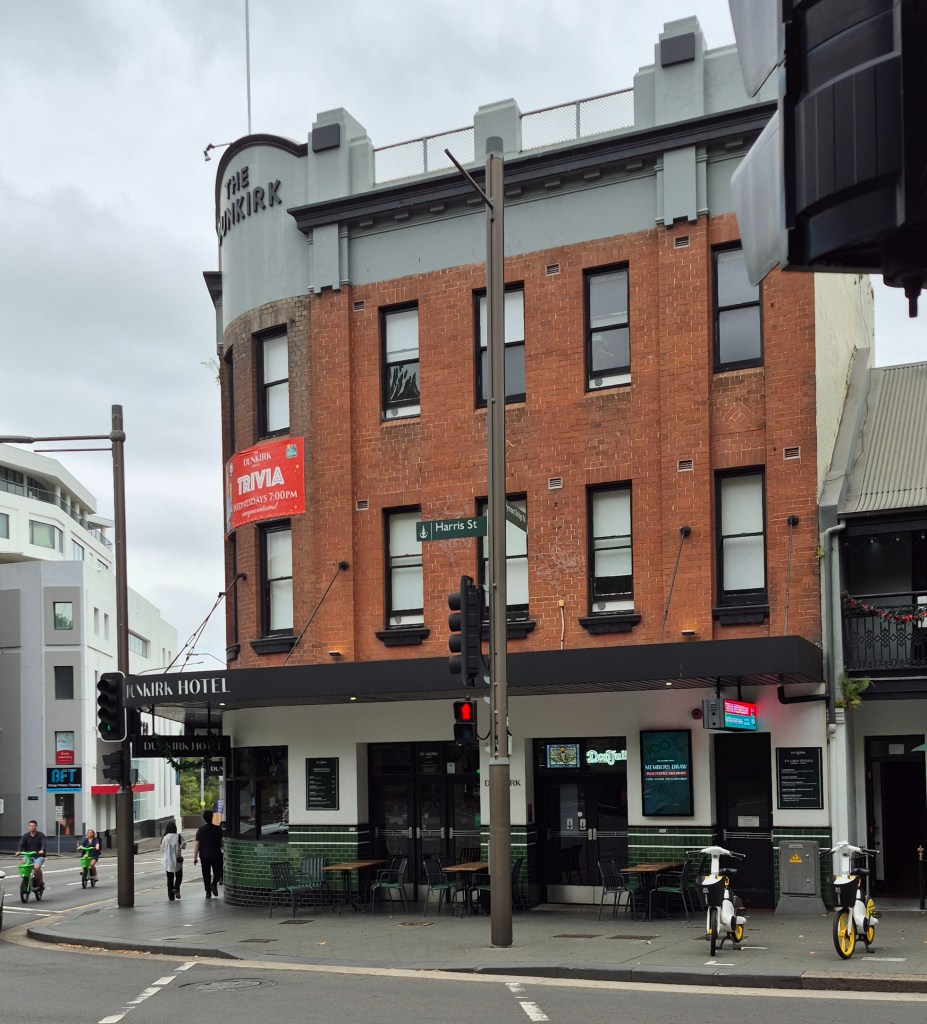 I felt hungry, but the Sydney Fish Markets were so crowded. So I walked along Pyrmont Bridge Road to Harris Street and went into a grand pub, The Dunkirk (above).