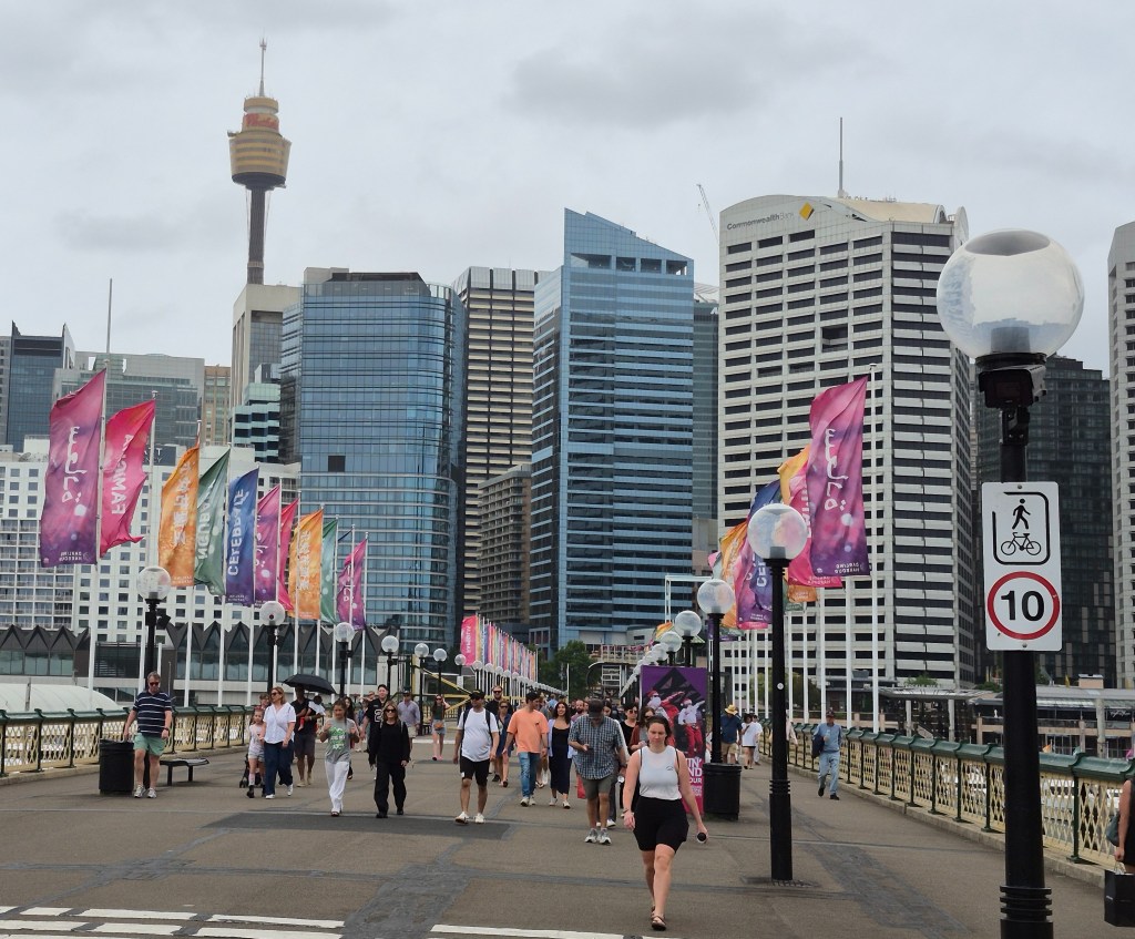 At Circular Quay. The previous day was a scorcher, 38 degrees, though very dry. In contrast this day was relatively cool, around 20 degrees. The clouds helped.