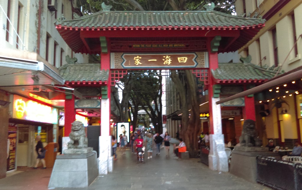 This article casts another slant. Following a downturn in population in Chinatown in the 1970’s, “the City of Sydney Council worked with the Dixon Street Chinese Committee to attract visitors by developing Chinatown into a tourist precinct. In the 1980s, Dixon Street was turned into a pedestrian mall. Traditional Chinese-style arched gates were established at both ends of Dixon Street; traditional symbols such as stone lions, lanterns and a Chinese-style pagoda were used to redecorate Chinatown, and properties along Dixon Street were converted to Chinese restaurants, supermarkets and gift shops.” In other words, it’s a tourist trap!