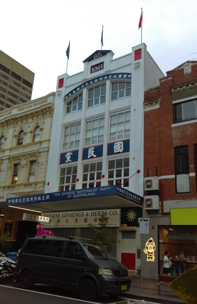 Nearby in Ultimo Road there is the Chinese Nationalist Party of Australasia building, an imposing construction. I always wondered what the story is. Searching online, I found a dissertation “Unlocking the History of The Australasian Kuo Min Tang 1911–2013” which goes in great detail into the history of the Chinese Nationalist Party of Australasia. It has a foreword by John Howard, the ex-Prime Minister. An article in Honi Soit (pronounced “Onny Swah”, the student newspaper of the University of Sydney and my alumnus) said in effect the Chinese Nationalist Party of Australia is a microcosm of the Chinese in Australia, with all the good and bad history.