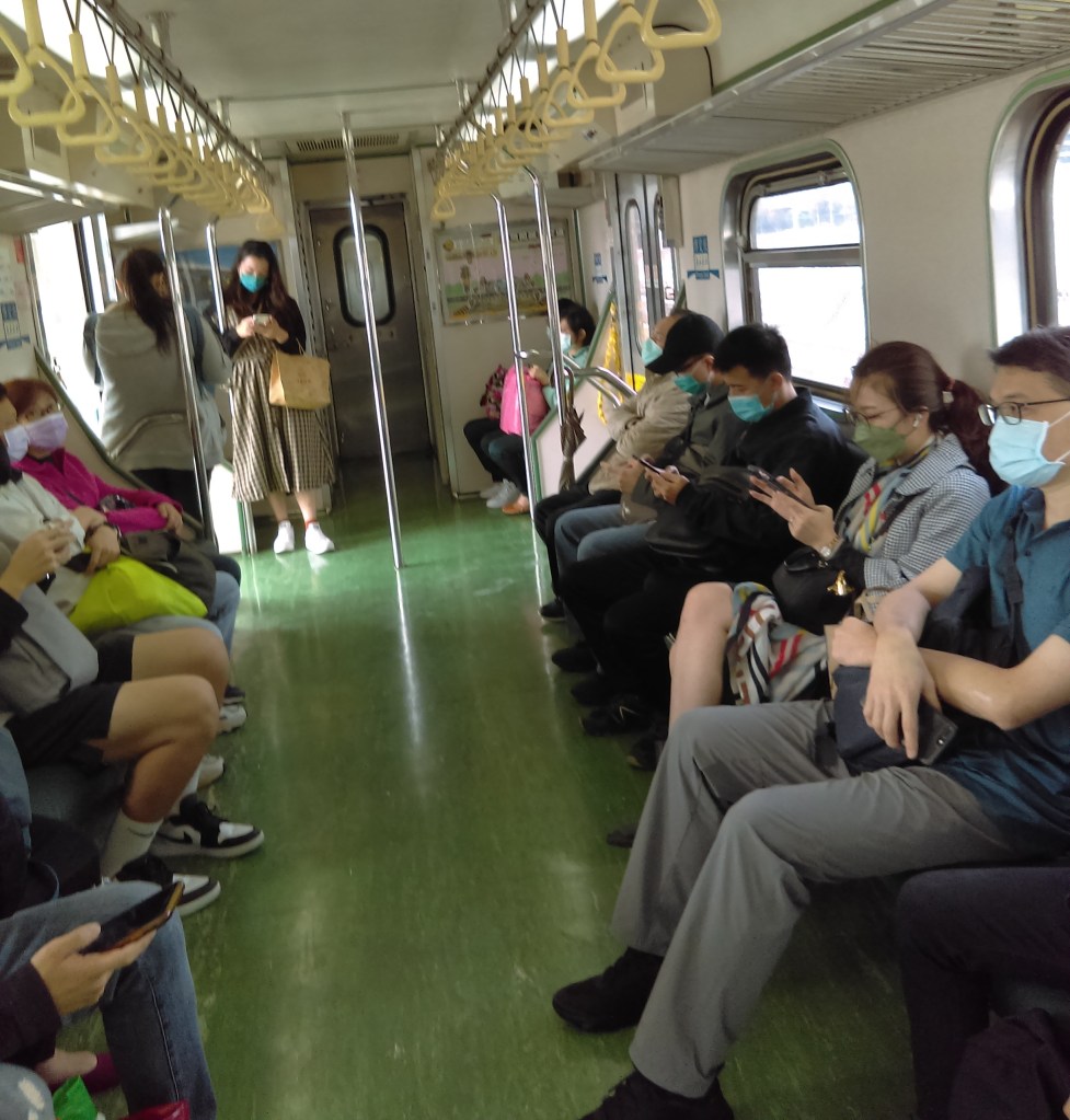 I passed through the turnstiles and descended to the platform. A local train was already waiting, so I got on, and took this photo (above).