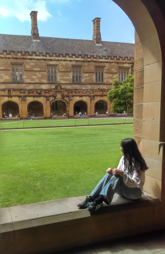 A tourist looking out over the Main Quadrangle. The Department of Philosophy is behind the grass. An article in Honi Soit (pronounced “Ony Swa”, a shibboleth marking the Sydney University student) details in depth the Department of Philosophy battles: “Philosophy itself is notorious for having eccentric characters, so it’s no surprise that the Department at Sydney University has its own colourful history. In the 1960s and early 1970s, the Department was caught in a quagmire of big personalities and political tensions culminating in an infamous split in 1973.”