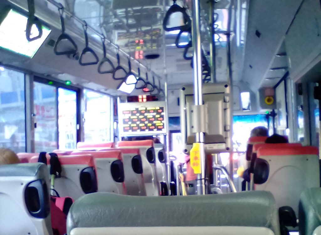 On the bus to Wulai. A day earlier, I had to stand all the way from the Xindian District offices to Wulai – not very pleasant. This time the bus was nearly empty.