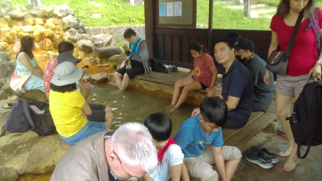 The attraction here is that you can put your feet in the hot springs. I didn’t join the group soaking in the springs, but I tested it by putting my finger in the pool – only lukewarm water (40 degrees according to this site).