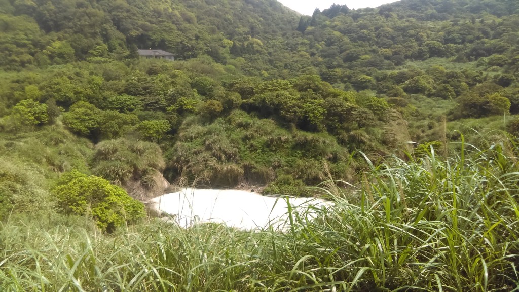 Xiaoyoukeng smelled strongly of rotten eggs, because of the sulphur. The Yangmingshan National Park website says “Before the Han Chinese people settled in the area, the Datun Volcano Group was the traditional hunting ground and traditional sites of the ancestors of the northern Plains indigenous tribes and the mid-to-late-age Shihsanhang culture people. Aside from hunting and gathering, these people also mined sulfur to trade with Chinese merchants, the Spanish and Dutch. … [F]earing that local people may engage in the manufacturing of illegal gun powder for use in uprisings, the Qing Court ordered the banning of sulfur mining after the Lin Shuang-wen Rebellion of 1786. The sulfur mines were guarded by garrisons, and the surrounding areas were periodically burned during each year. By 1877, Qing officials Ding Ri-chang and Shen Bao-zhen petitioned the Qing Court to relax the ban on sulfur mining, and the government hired workers to mine and refine sulfur. In 1886, Liu Ming-chuan, the Governor of Taiwan, formally requested the establishment of a Sulfur Commission in Taiwan to oversee the mining and trading of sulfur. Since that time, sulfur has become one of the Four Commodities of Taiwan, along with camphor, tea, and sugar.”