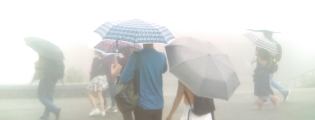 The end of the walkway. Thick fog surrounded us, preventing any view, although I could hear a constant roaring sound. The view on a clear day would be the first picture of something like this.